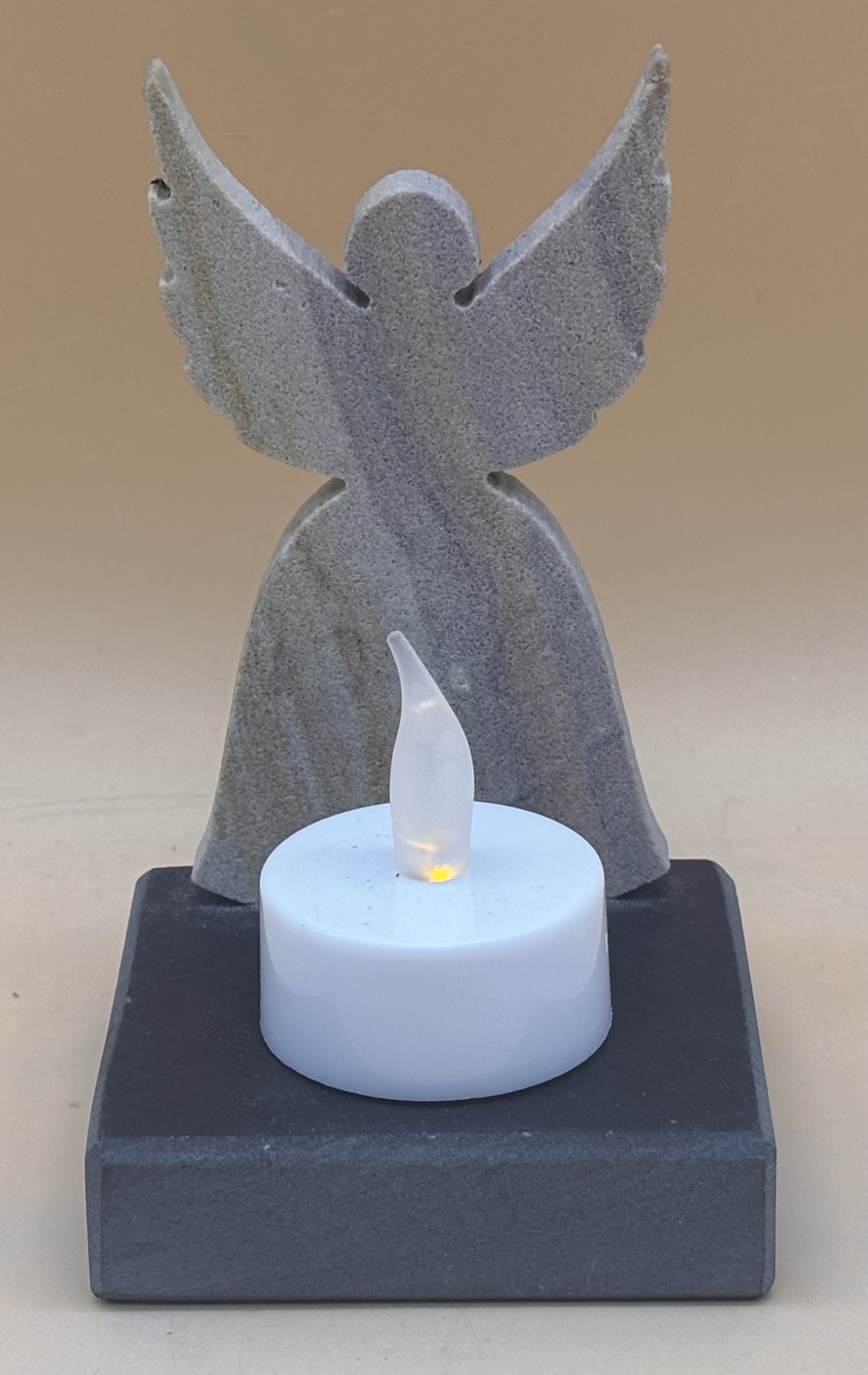 Engel aus Rainbow Quarzsandstein auf Schiefersockel, Hergestellt in Bad Wörishofen Bayern,( Lieferung ohne Kerze )