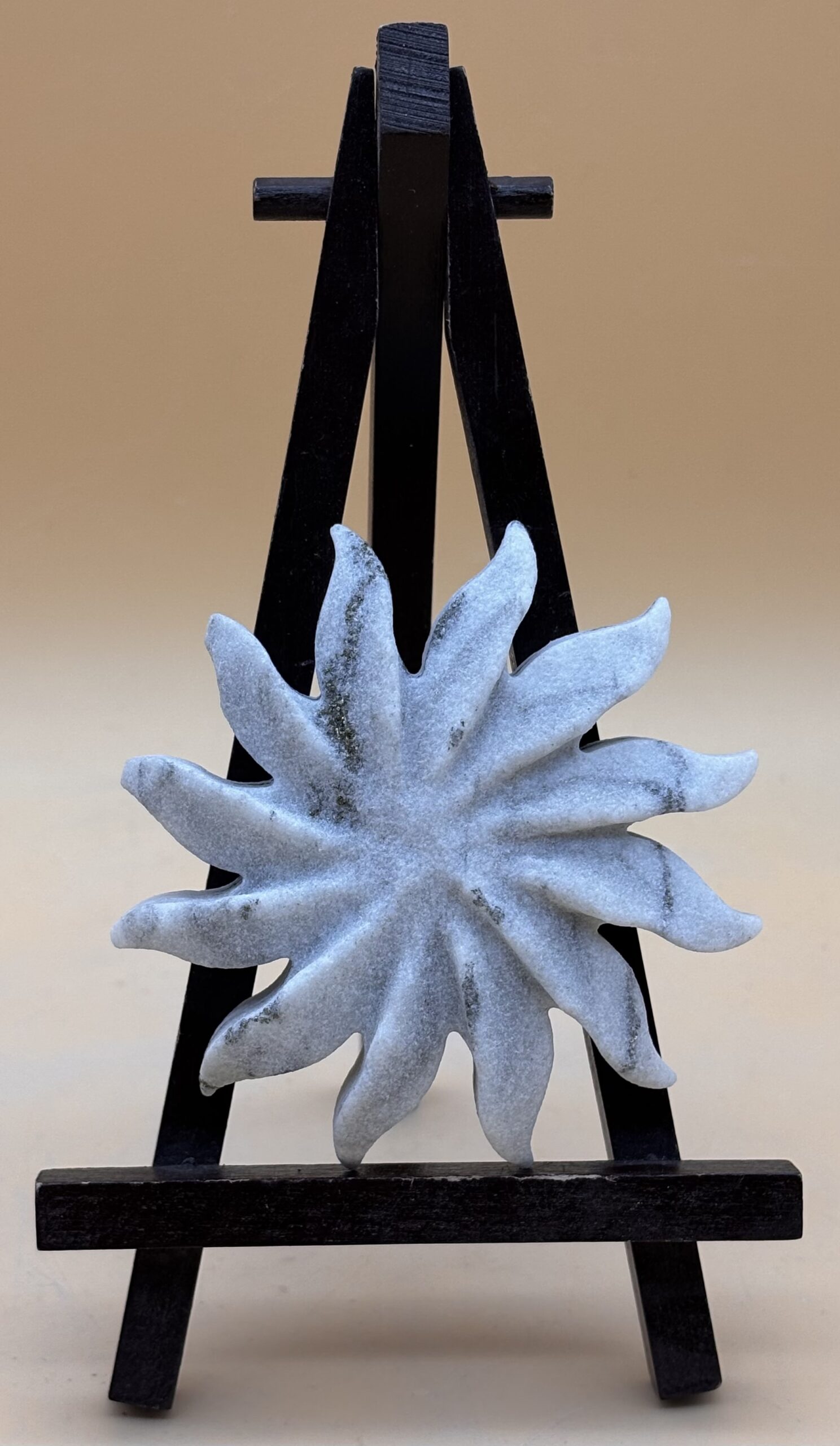 Goldmarmor Sonne aus feinem Dolomitmarmor des Binntal / Wallis / Schweiz, Oberfläche jetgestrahlt, Schweizer Handarbeit