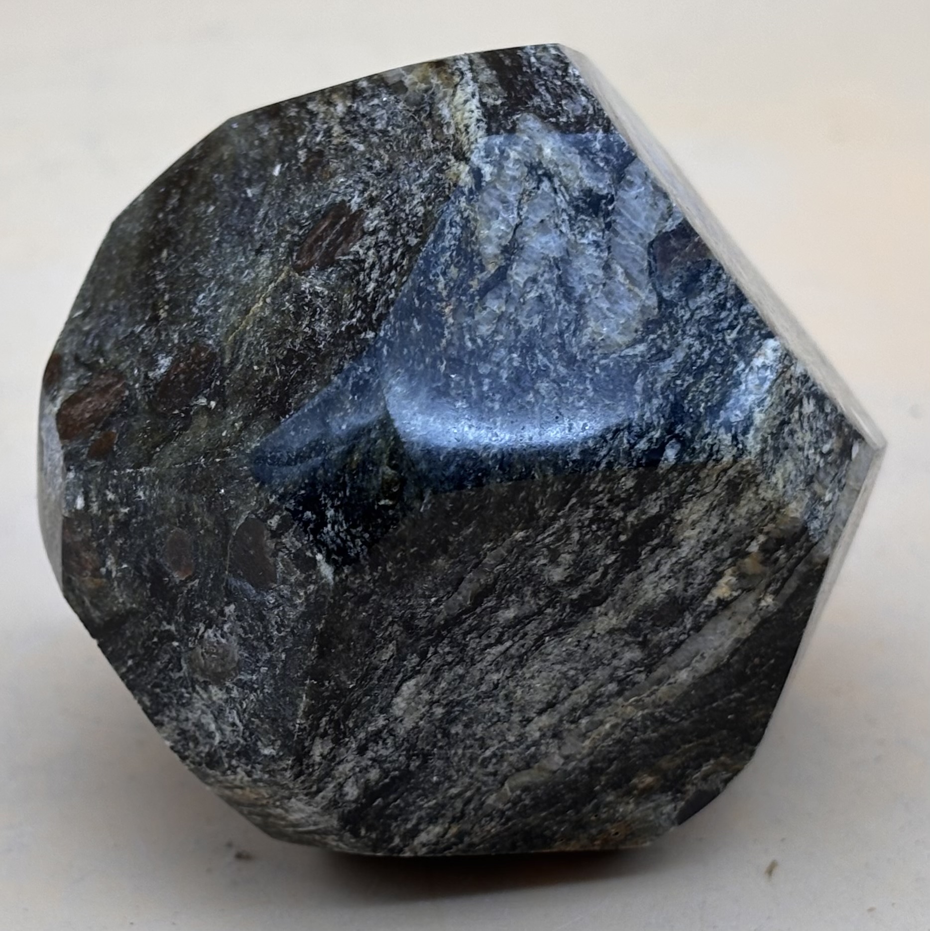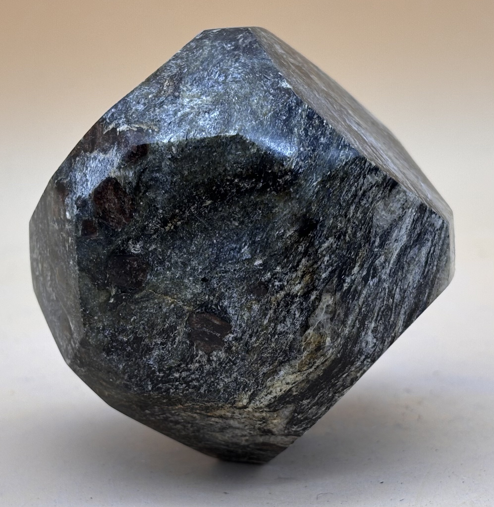 Granat Kristall Modell aus Walliser Metamorphit geschnitten und poliert, Herkunft Rohstein: Binntal Schweiz