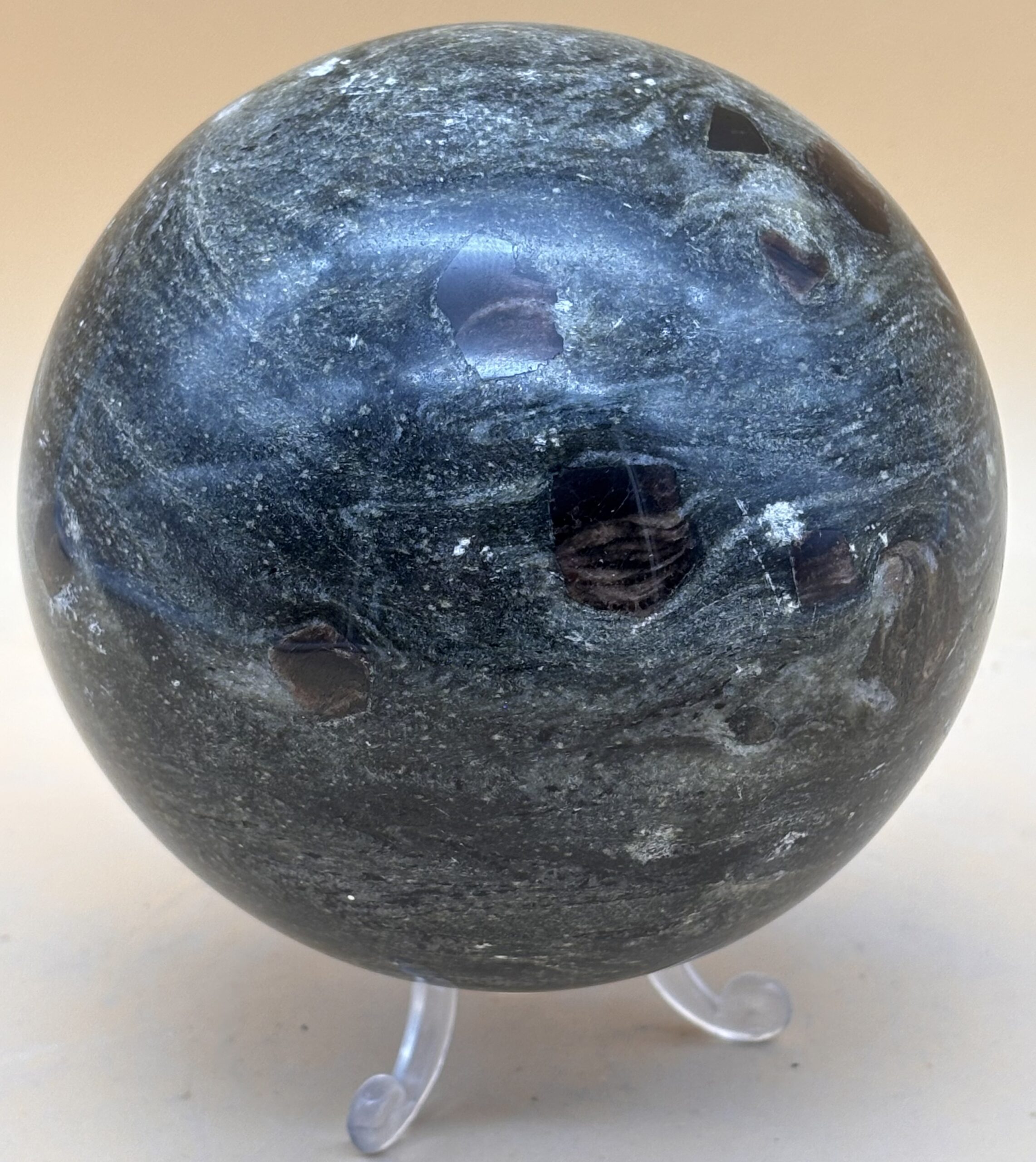 Granatschiefer vom Granatkogel Öztal Südtirol. Kugel Oberfläche poliert. Vermutlich hatte vor sehr langer Zeit, Özi auch schon versucht diese Steine zu bergen, fiel aber unglücklicher Weise in eine Gletscherspalte und es wurde nix draus Kugeln zu machen. Darum gibt es uns, wir produzieren aus allen Rohsteinen Kugeln.
