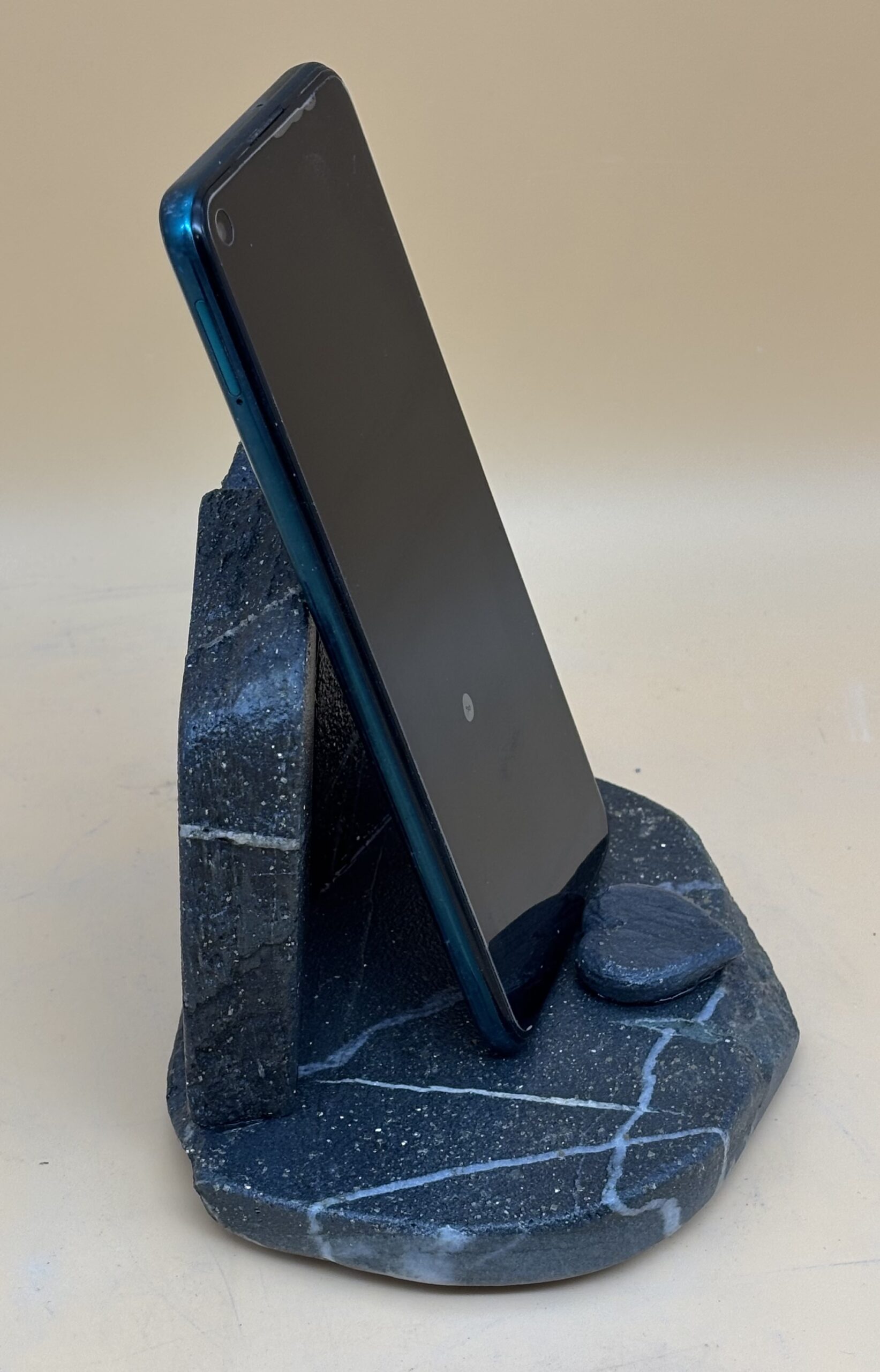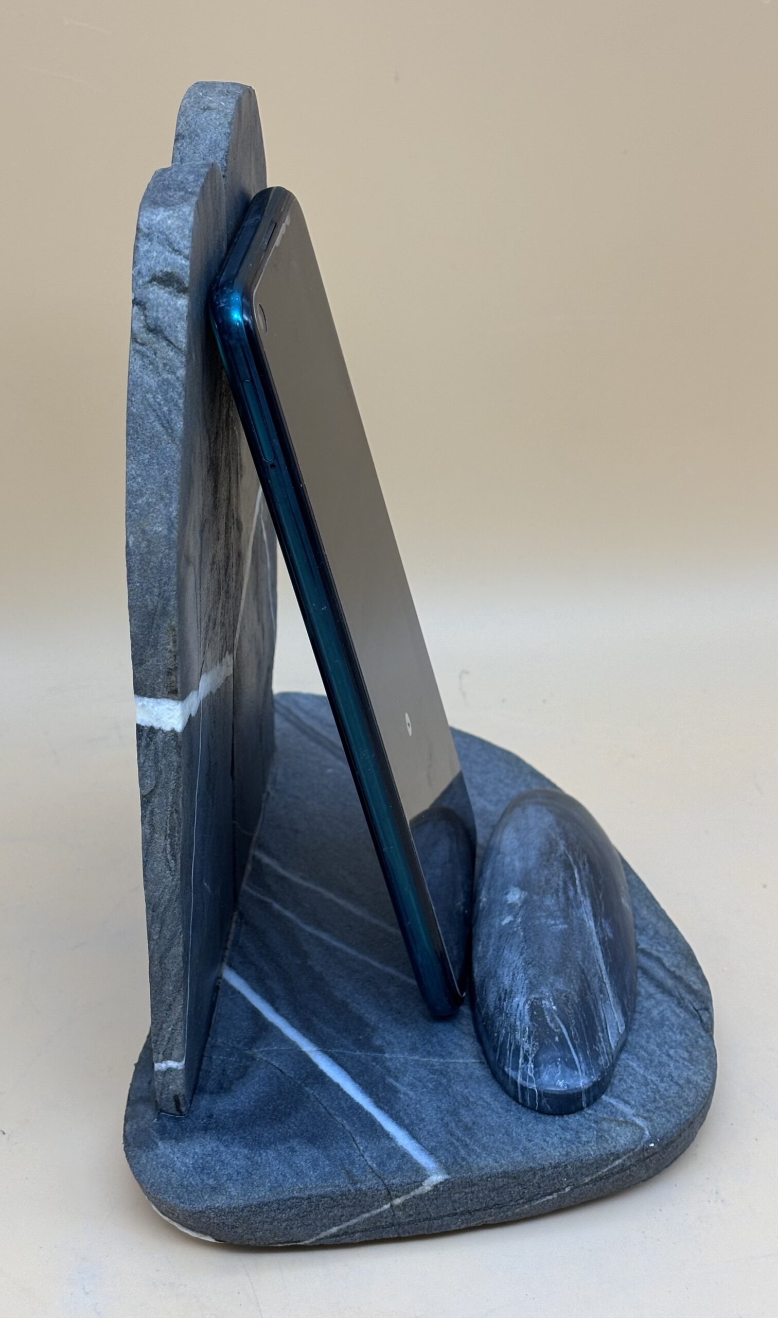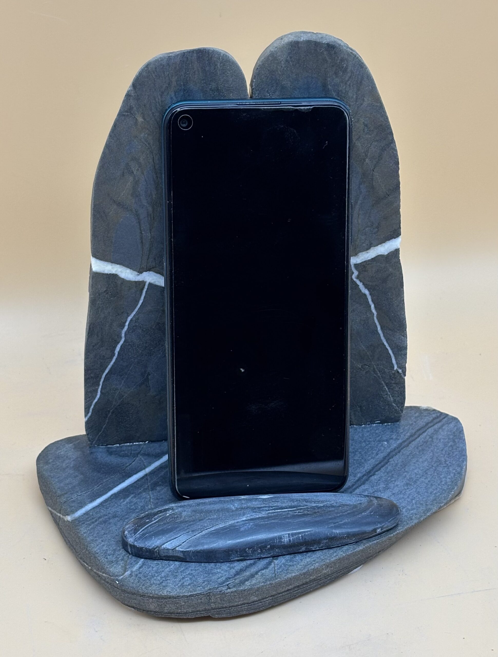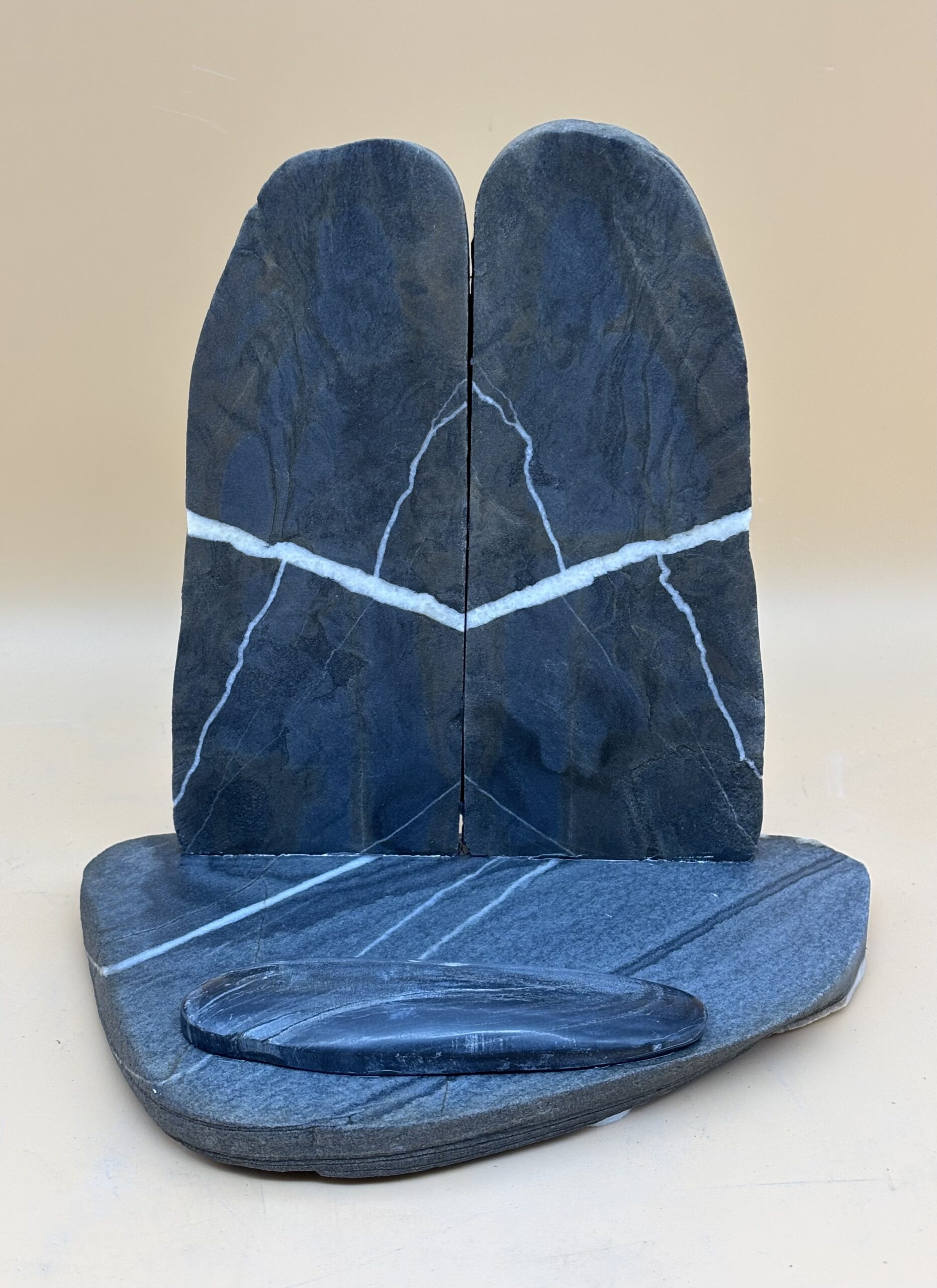 Schweizer antrazit-farbener Kalkschiefer vom Hinter-Rhein bei Chur / Graubünden. Kreativ handwerklich gestaltet. Das Gebiet um Chur ist seit der Altsteinzeit bewohnt. Die damaligen Bewohner bedienten sich den Steinen aus dem Hinter-Rhein um daraus Gebrauchswerkzeuge herzustellen. Wir machen es ihnen heute nach, nur der Verwendungszweck ist ein anderer.