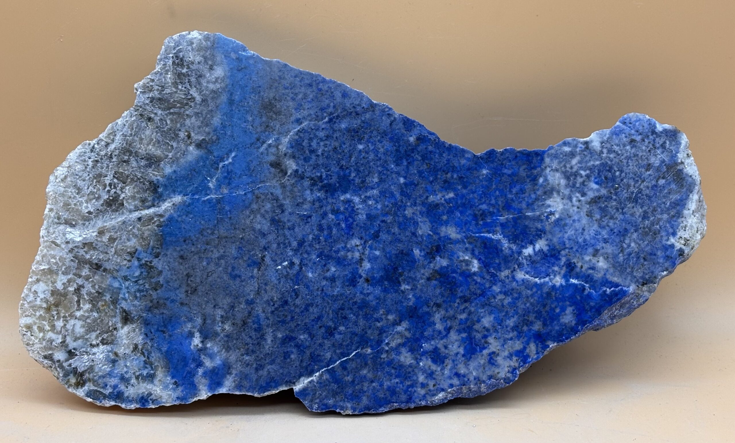 Lapislazuli ( auf Deutsch " blauer Stein " ), Rohstein Anschnitt mit polierter Oberfläche, Rückseite Naturkruste, auch für Aquarien-und Terrarienliebhaber geeignet. Nicht löslich in Wasser, gibt keine Mineralien ab. Unbehandelt. Hergestellt in Bad Wörishofen