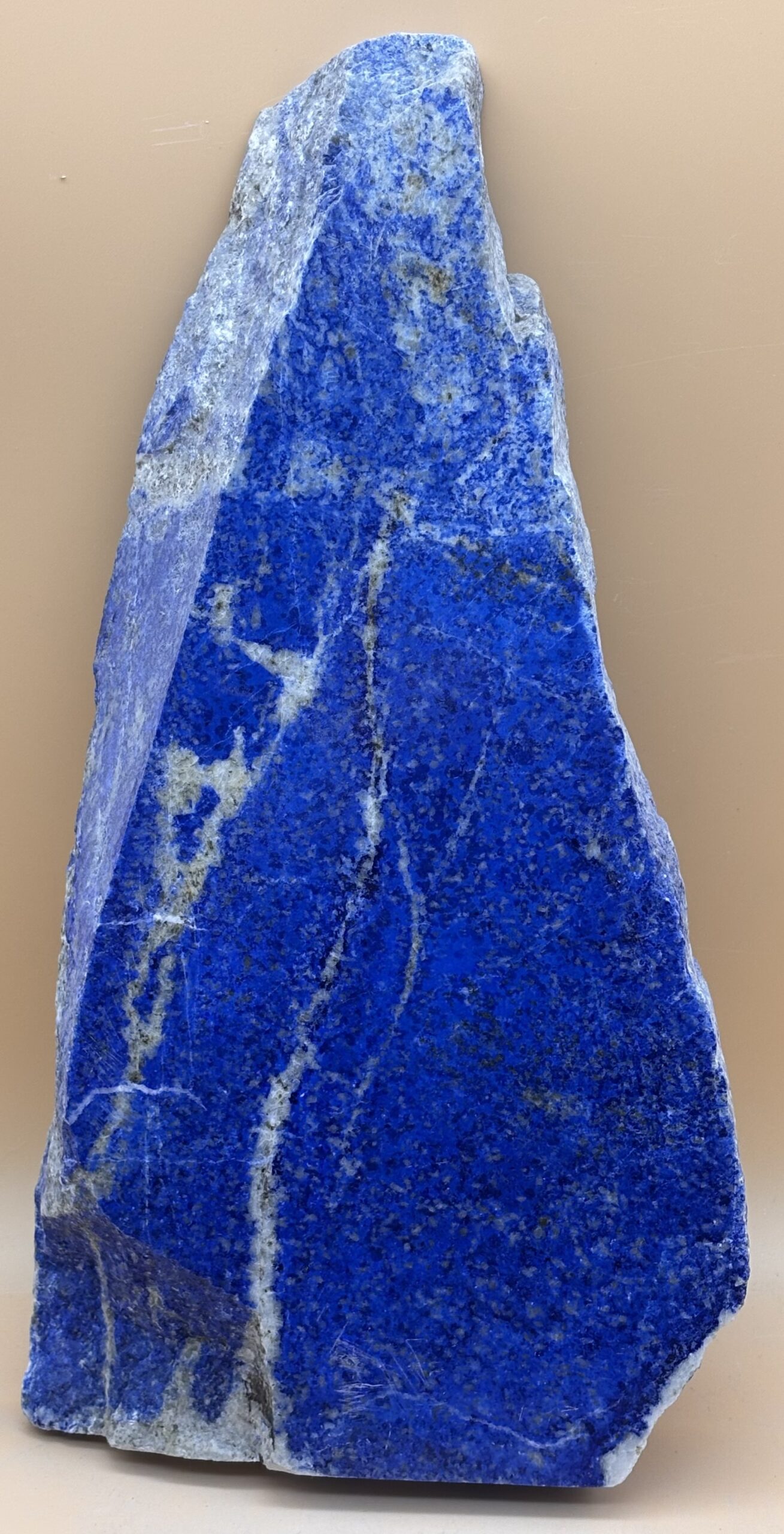 Afghanischer Lapislazuli mit eingraviertem stehendem Buddha, Oberfläche poliert, Seiten Natur