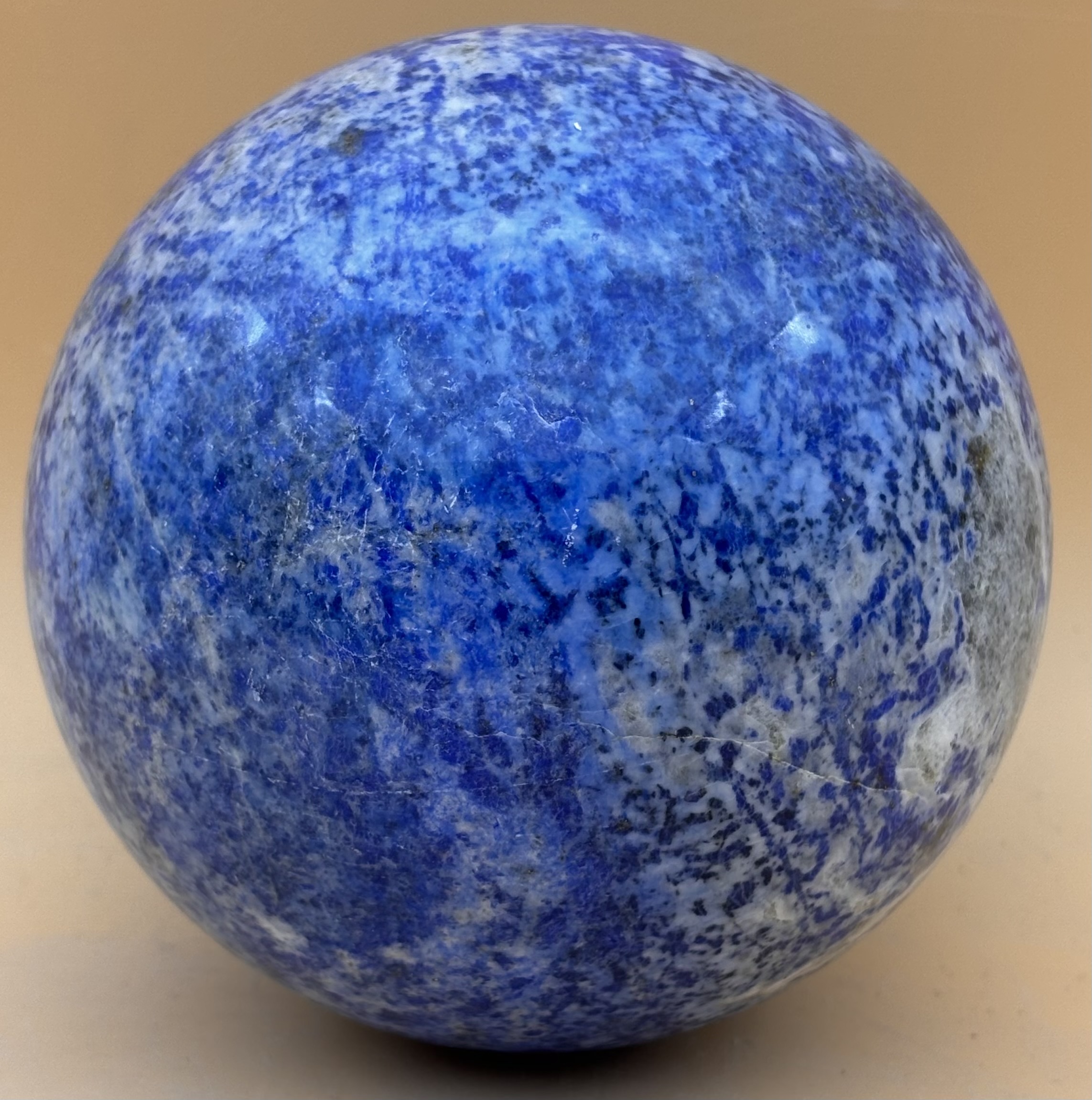 Afghanischer Lapislazuli, polierte Kugel, Türkisblau gesprenkelt, sehr interessante Struktur