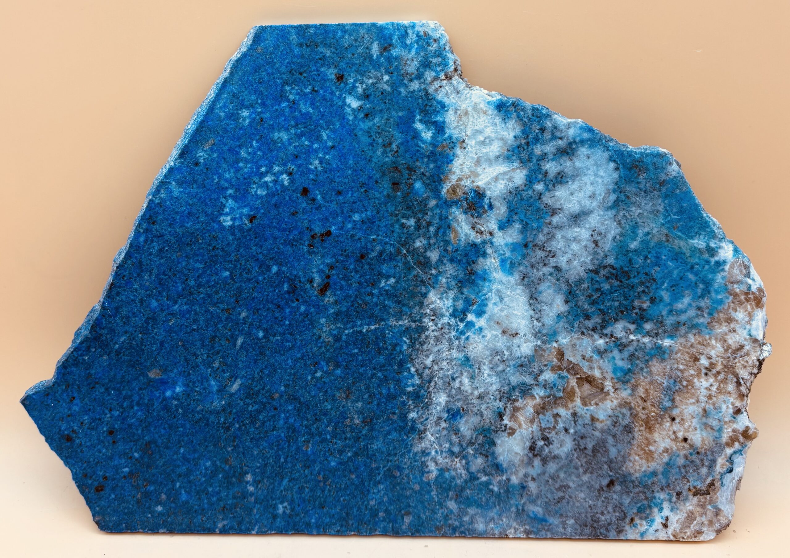 Petrolfarbene Dünnschliff Gesteinsplatte aus Afghanischem Lapislazuli, Oberfläche poliert
