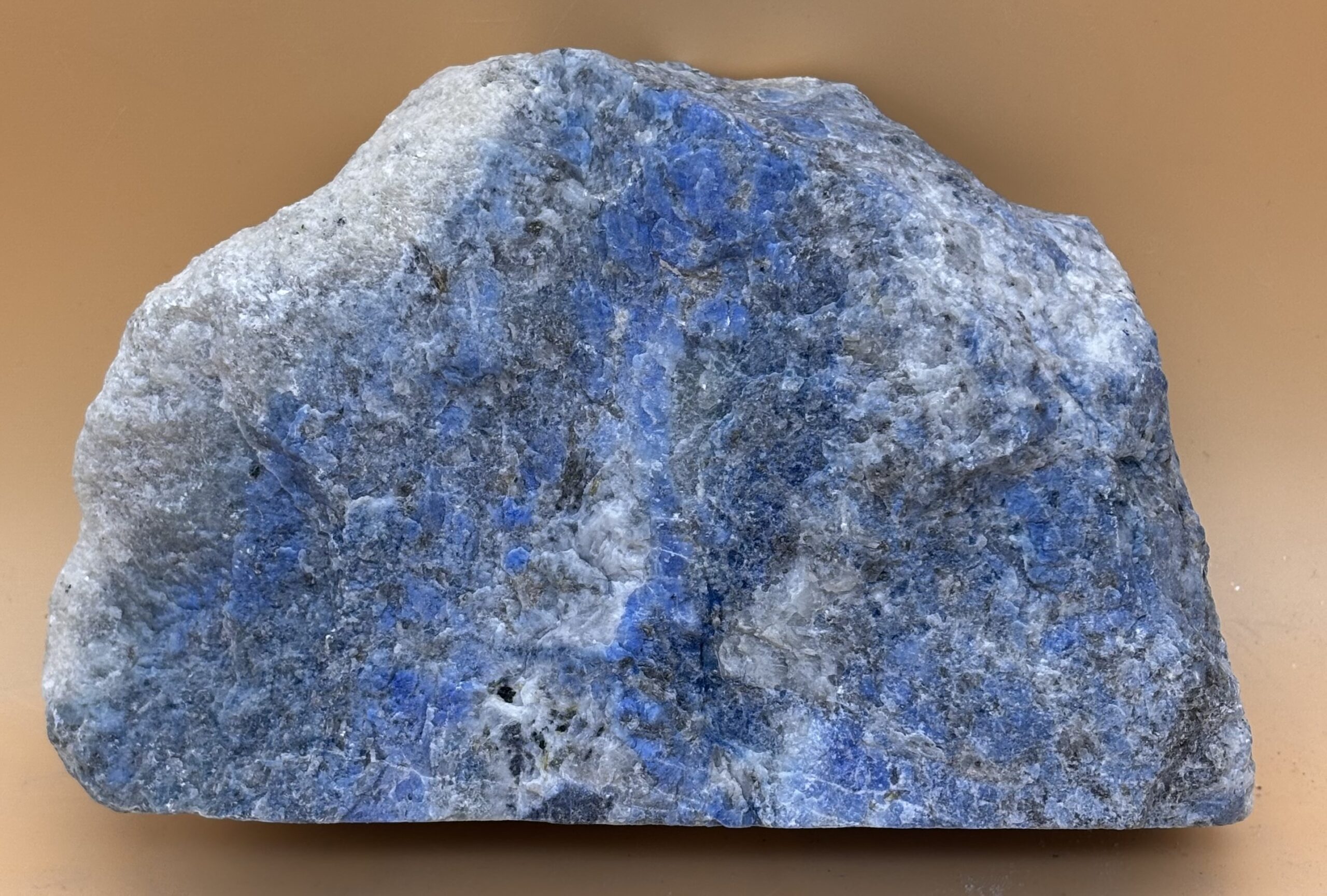 Türkisblauer Rohstein Anschnitt aus Afghanischem Lapislazuli, Oberfläche poliert, Seiten Natur