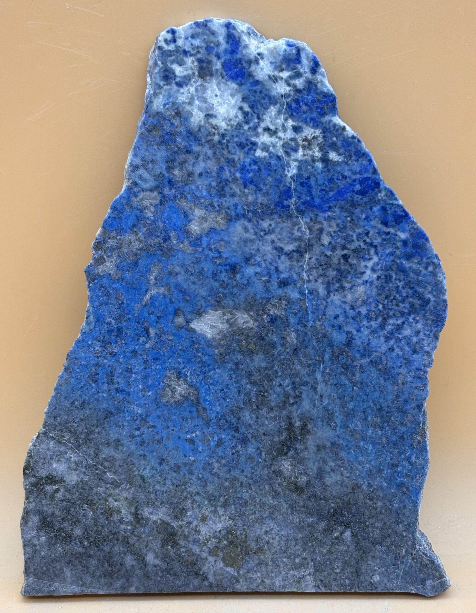 Afghanischer Lapislazuli, Steinscheibe Oberfläche satiniert-gebürstet, interessanter Farbverlauf und dichte Konsistenz, klingelt beim Anklopfen, geeignet zur Schmuck Herstellung