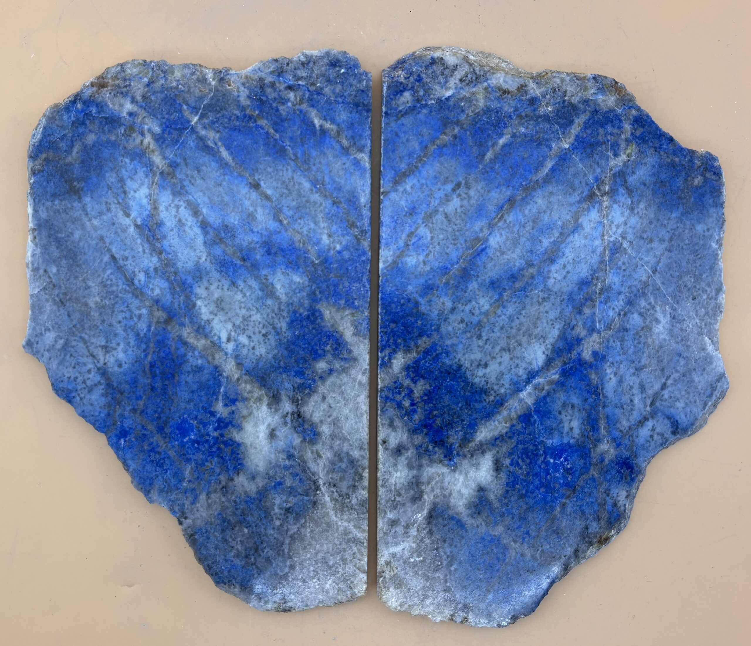 im Spiegel geschnittene und polierte Afghanische Lapislazuli Platten, Oberfläche poliert, Hergestellt aus Rohstein in Bad Wörishofen/Bayern