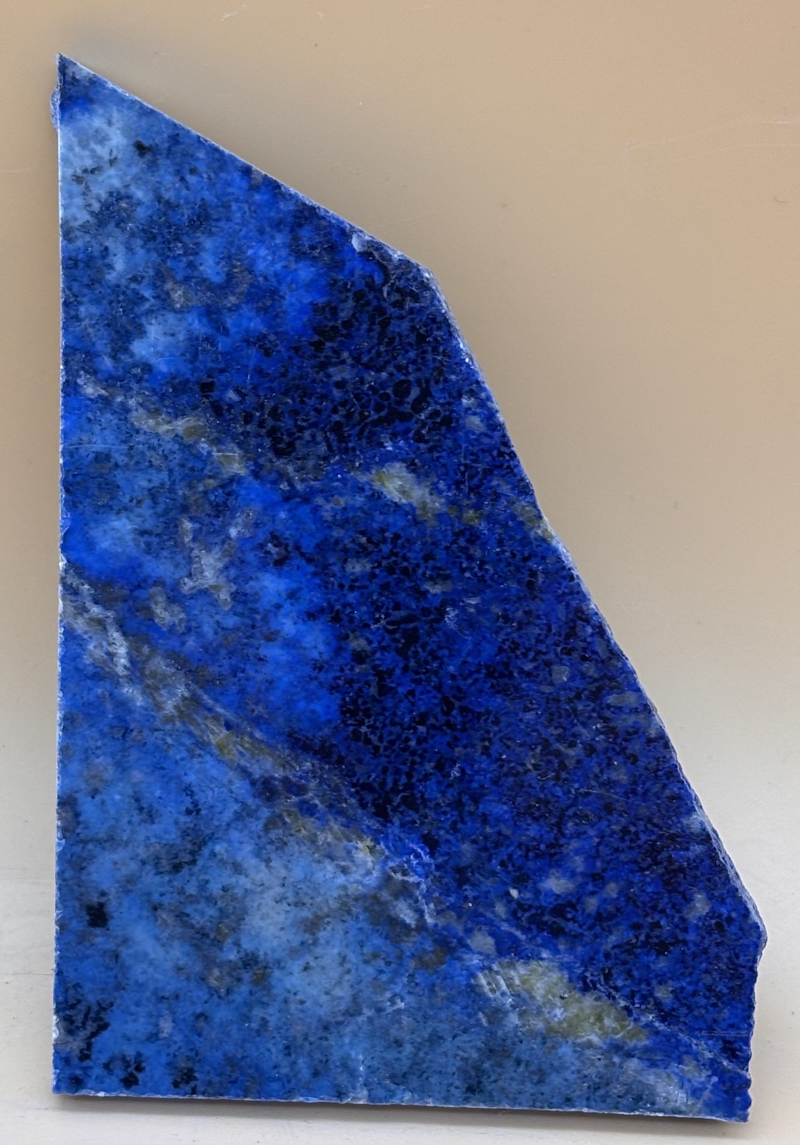 Tiefblau bis Dunkel-Türkis sind die Haupttöne dieser Lapislazuli-Platte, beidseitig poliert
