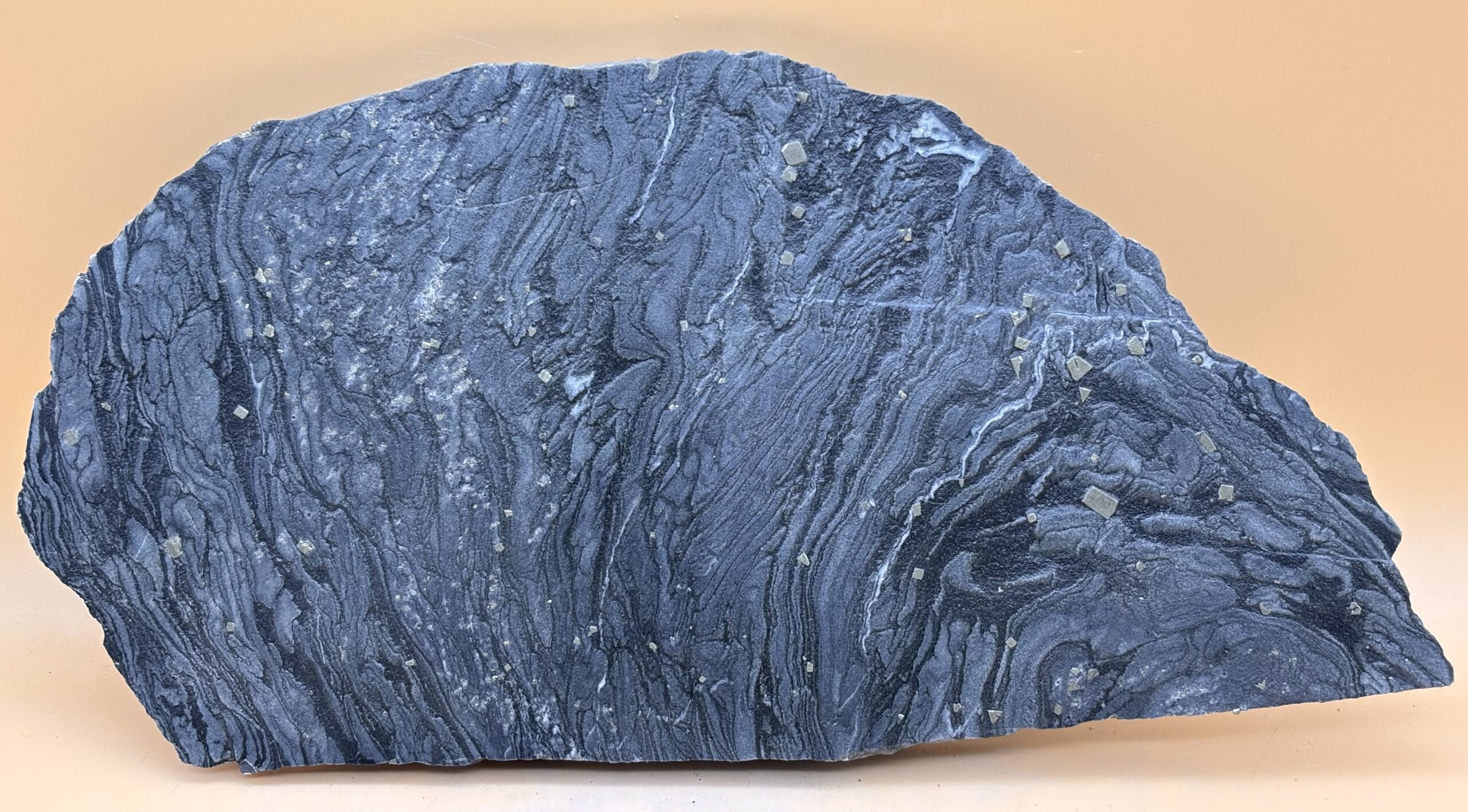 Nolla Pyrit Schiefer Rohstein Anschnitt / Krustenplatte mit jetgestrahlter Oberfläche und Naturkrusten-Rückseite