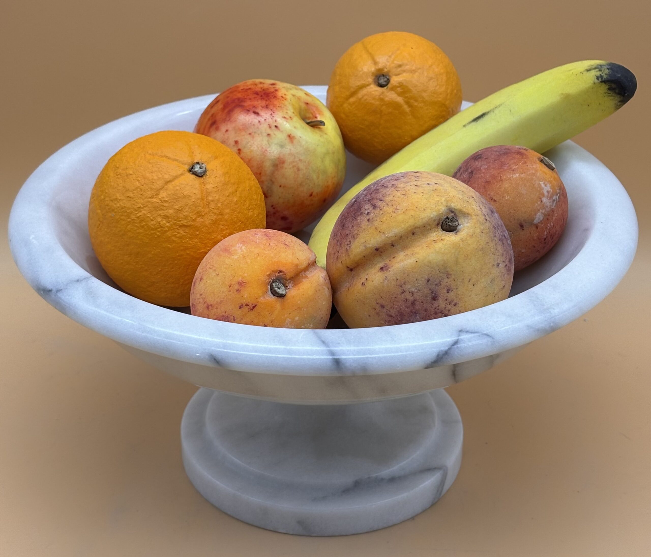 edle Carrara Obst Schale, Handarbeit aus der Toskana, Oberfläche poliert, Lieferung ohne Marmorobst