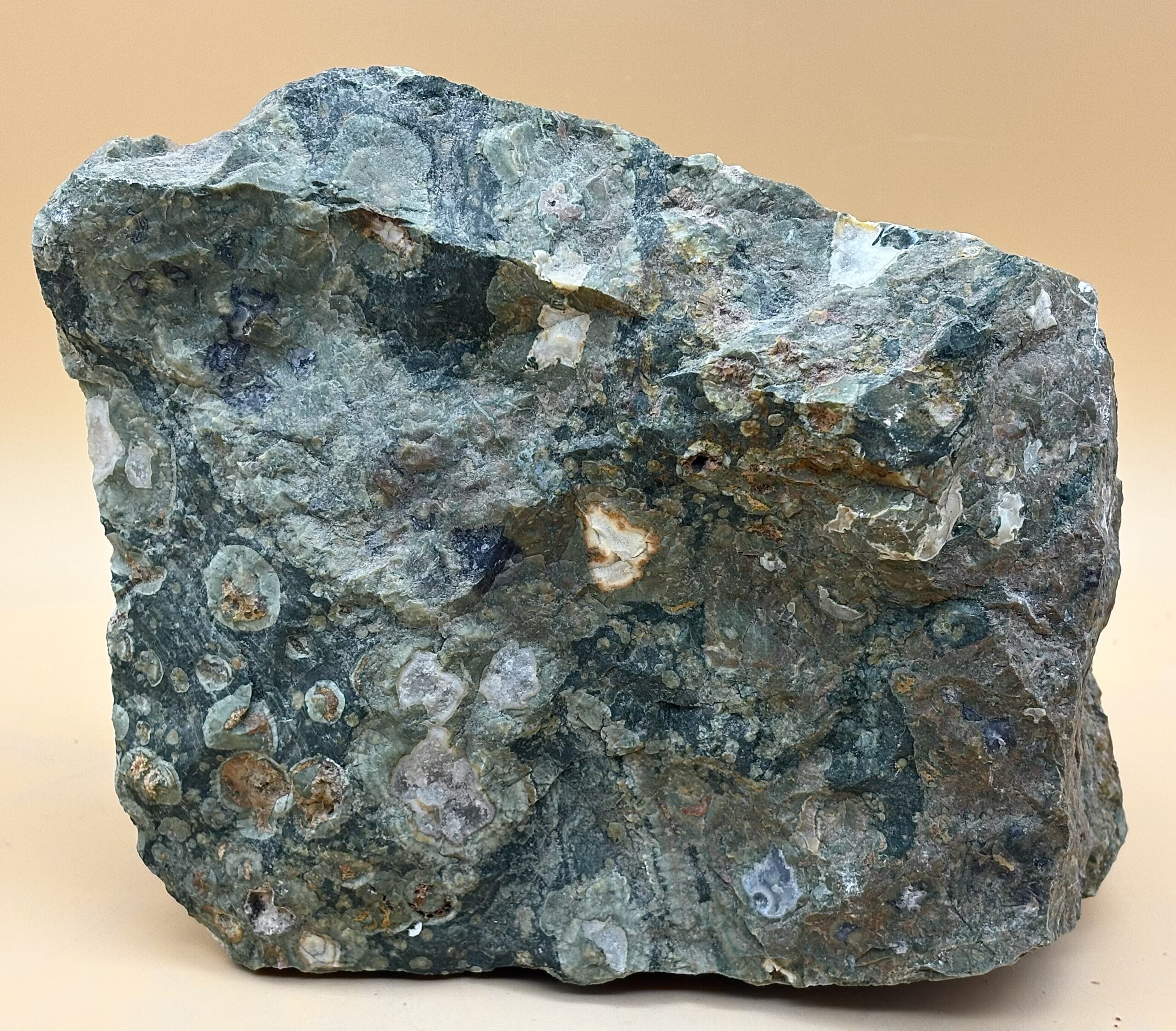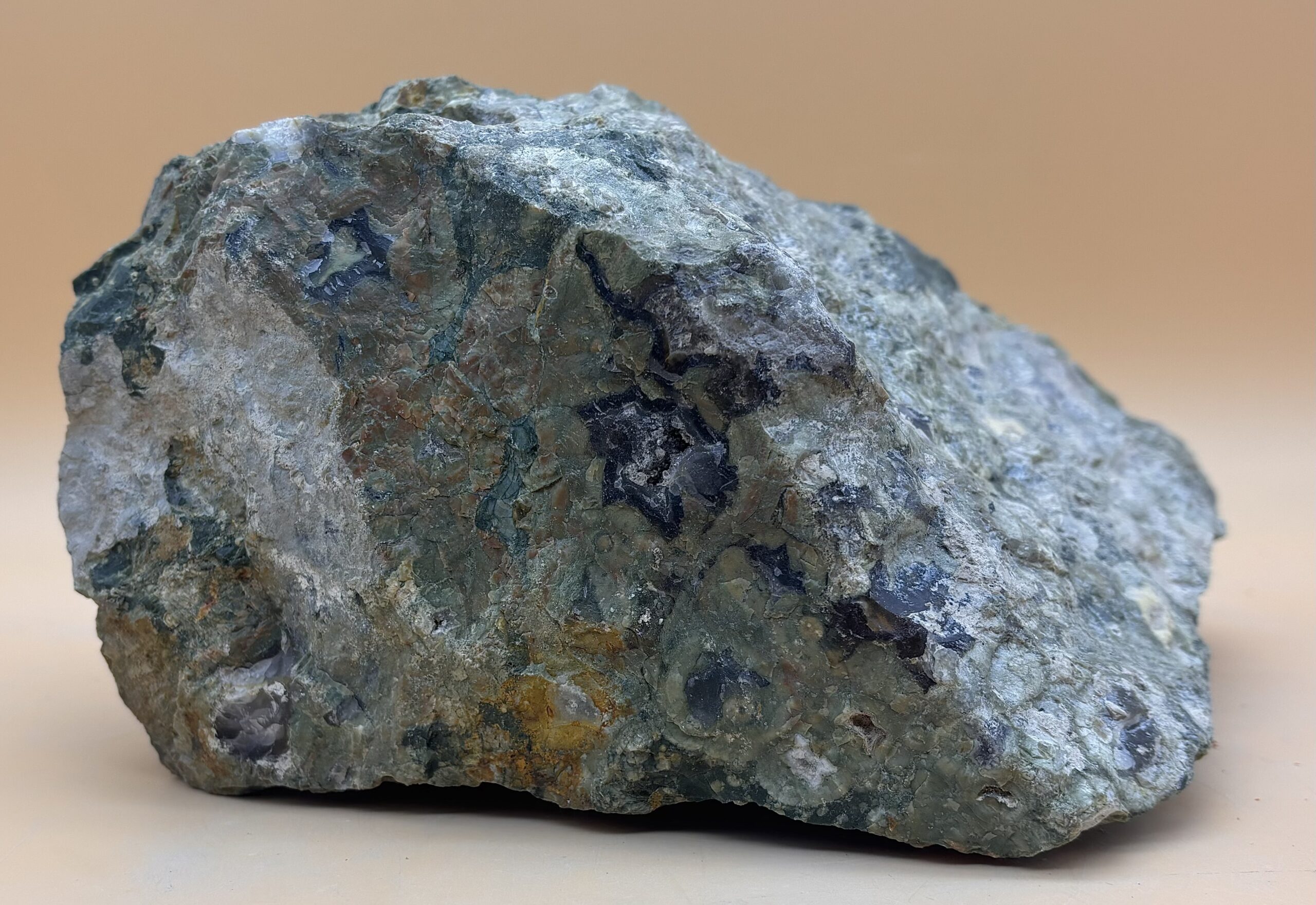 Australischer Rhyolith vom Mt. Hay, Queensland Australien. Rohstück, Eigenfund bei 40 Grad Außentemperatur. Sehr harte Matrix aus Rhyolith und Achat.