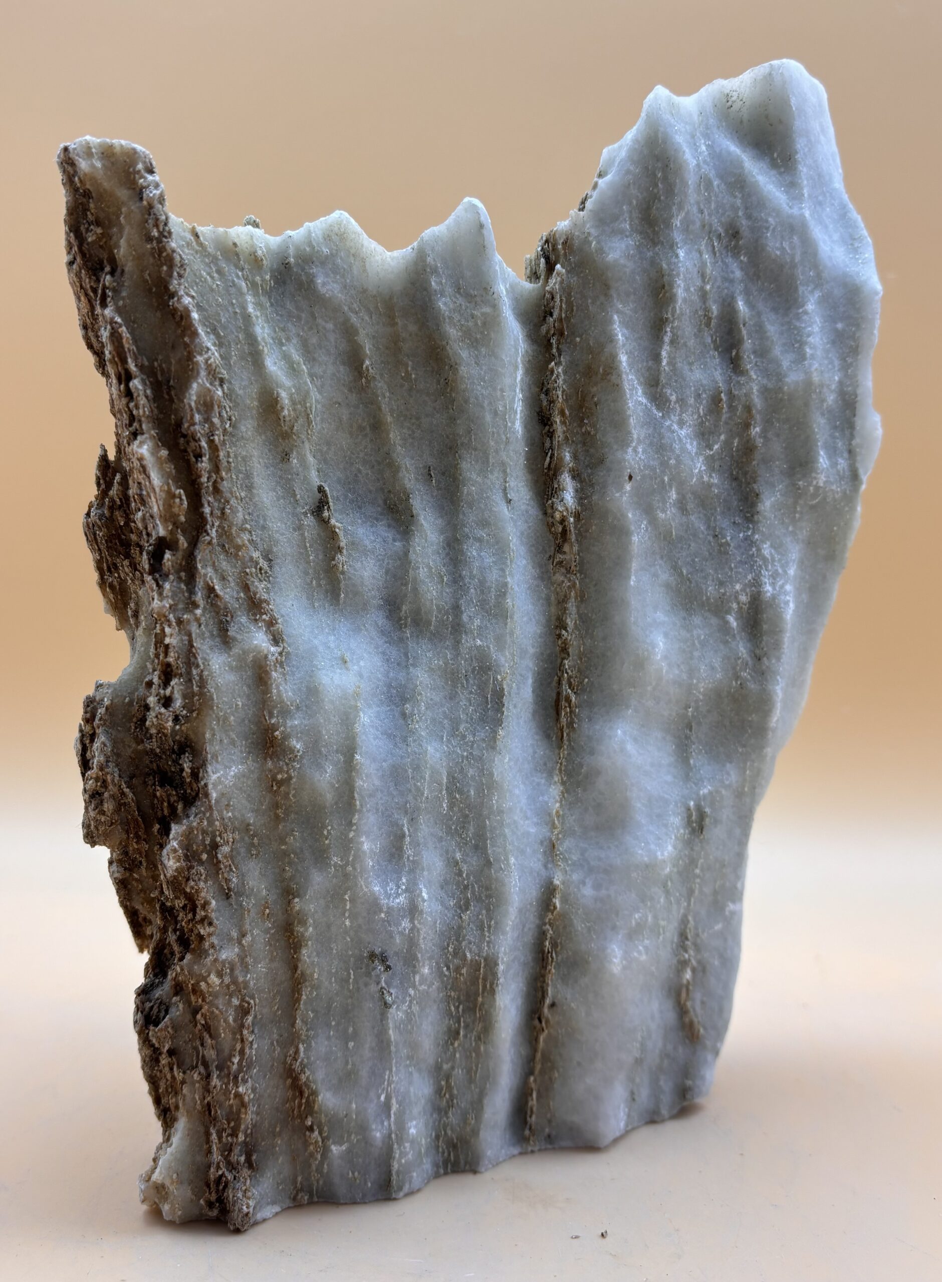 Gletscherbach-Erosionsgestein aus Glimmerreichen metamorphem Dolomit. Fundort Binntal/ Wallis / Schweiz. Sehr schönes Deko-Objekt bei guter Beleuchtung, auch als Suiseki geeignet