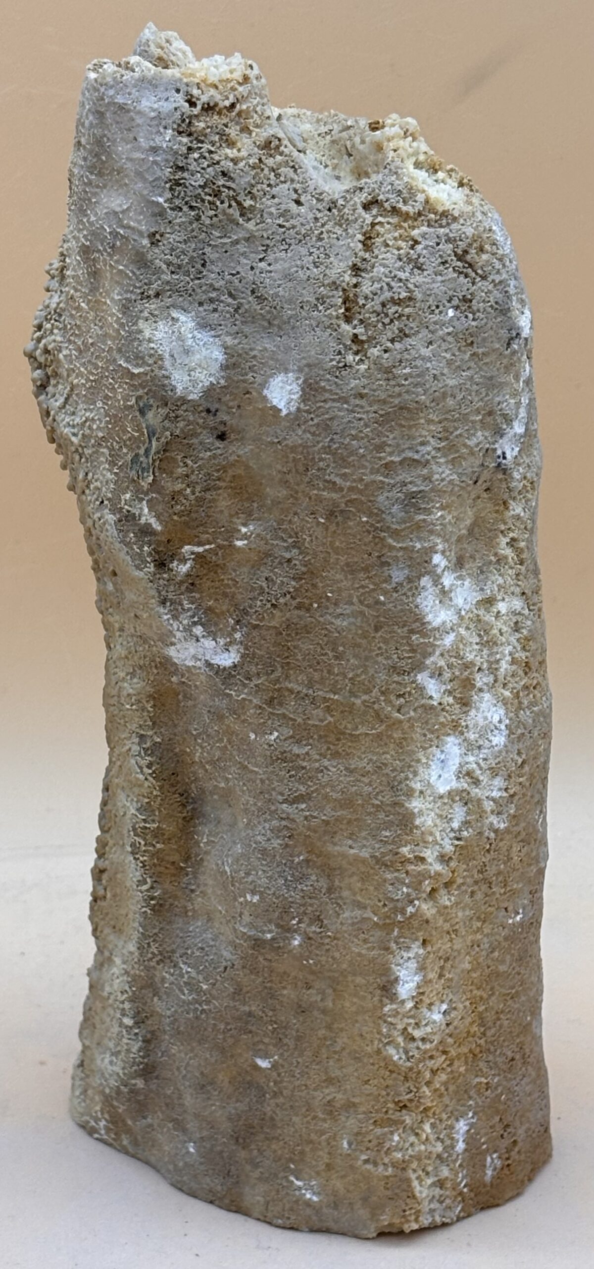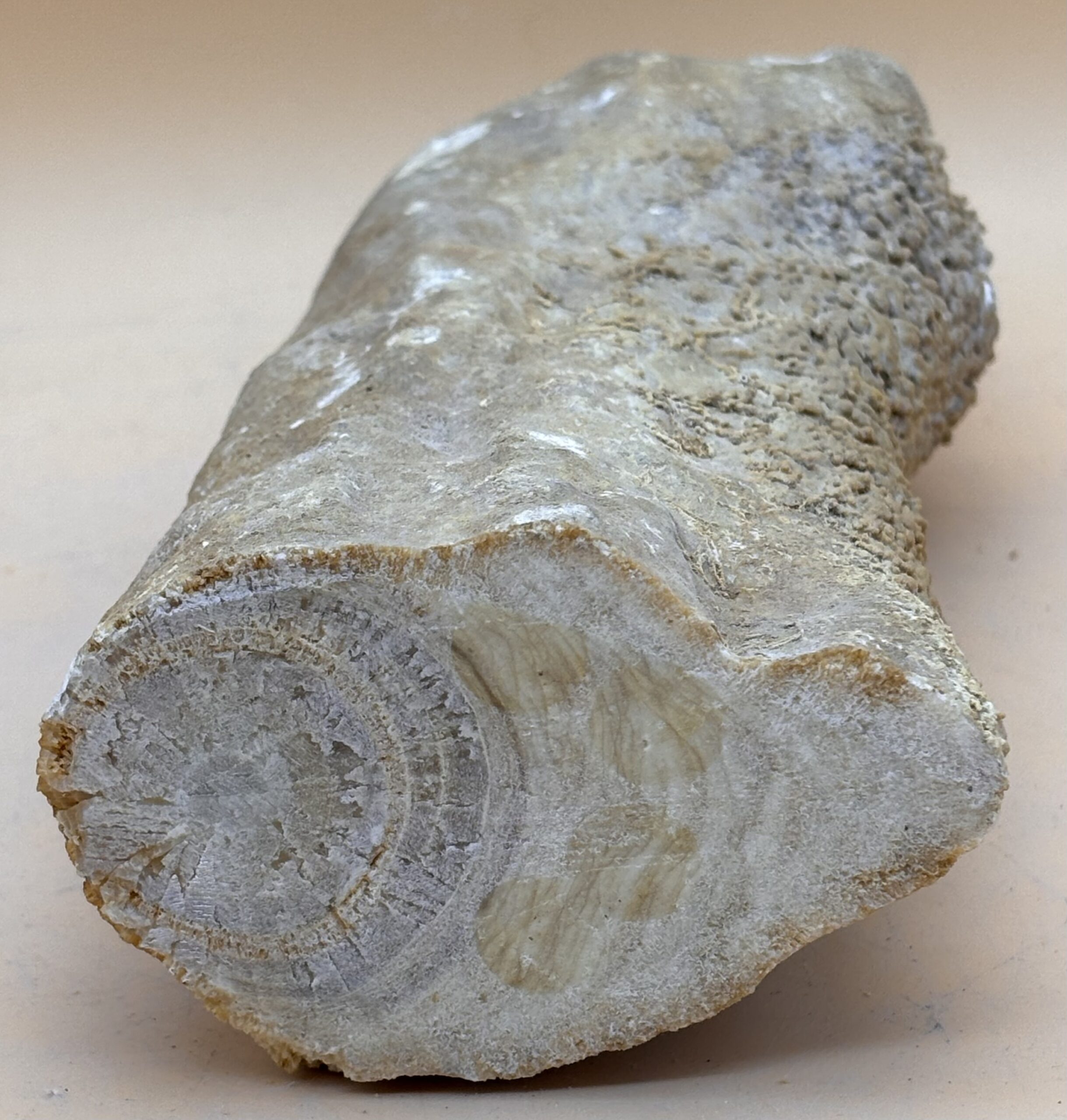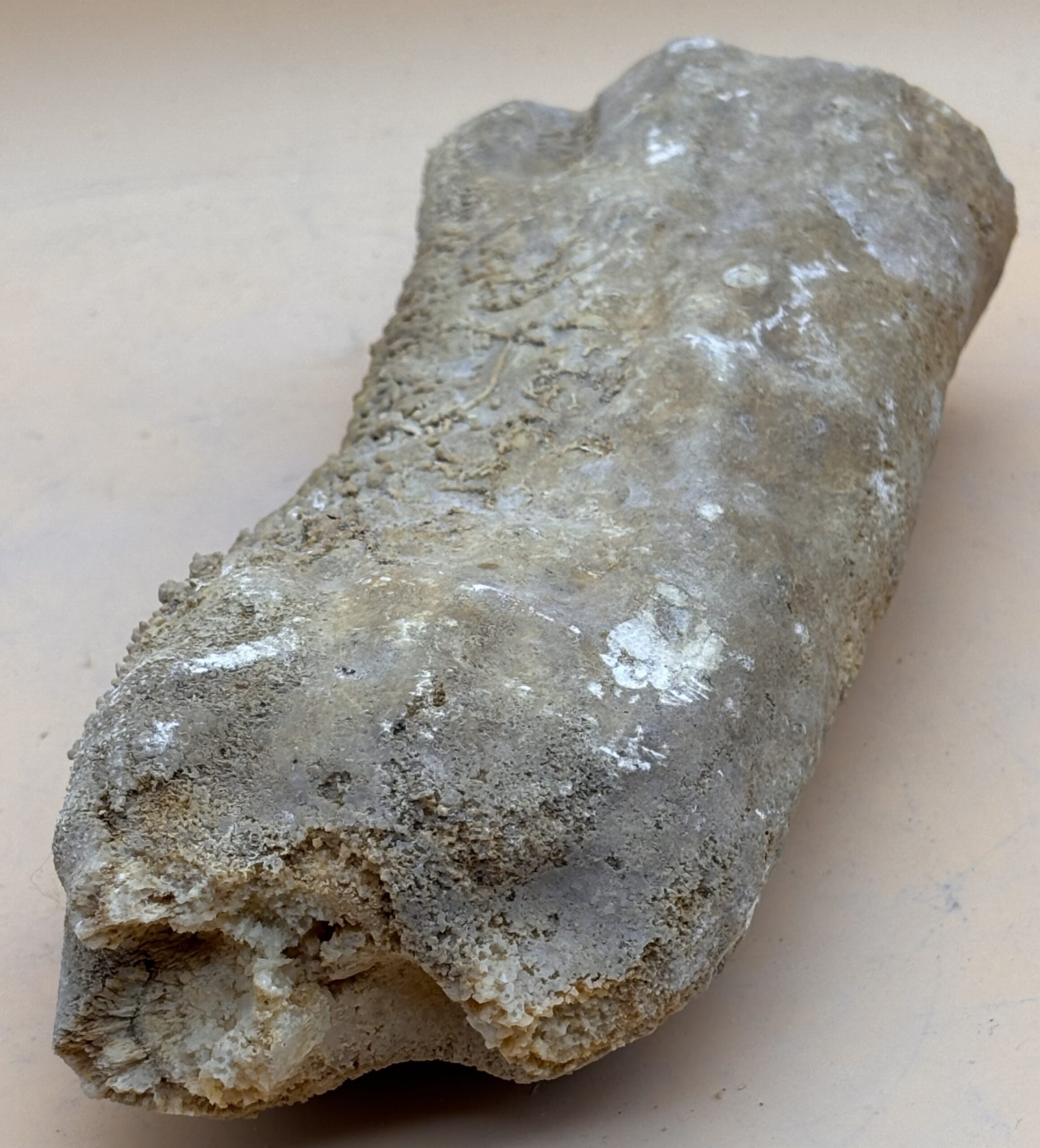 Stalaktit aus einer Höhle des Marmara Steinbruchs im Bosporus. Interessant ist die durch Wassermangel Entsinterung dieses Tropfsteines an der ehemaligen Abtropfspitze. Klimawandel gabs schon vor tausenden Jahren, an den Tropfsteinen abzulesen.