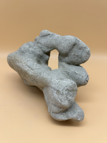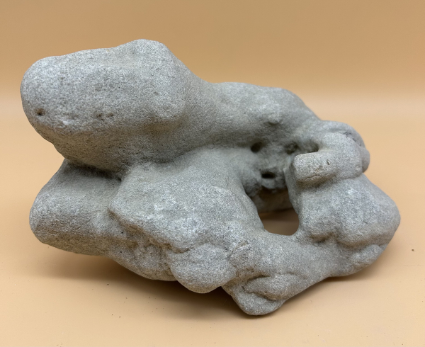 Calcit-Quarz-Kongregation der letzten Eiszeit, im Schwäbischen „Lösskindl“ genannt, da die Formen an Figuren oder Tiere erinnern. Entstanden sind diese seltenen Gesteinsformen, wenn sich feinster Kalk- und Quarzstaub der Gletschergeschiebe in Senken durch Winde ablagerten. Mit Regenwasser vermischt und sich dadurch Knollen entwickelten, die unterschiedlicher nicht sein konnten. Fundort: Unterallgäu bei Mindelheim. Unikat