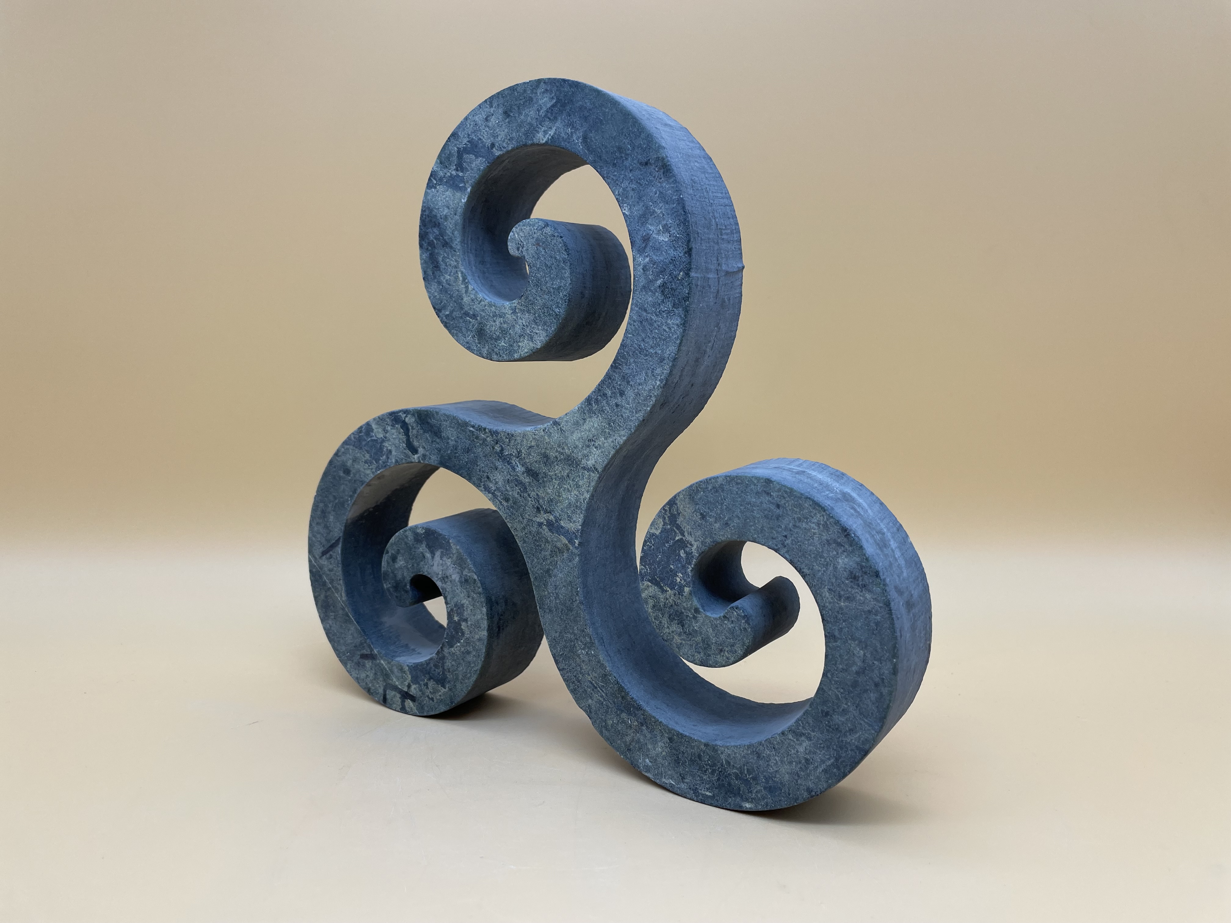 Walliser Serpentin. Ursprung des Rohsteins ist ein Lawinenhang am großen Schinhorn im Keltischen Binntal. Eigene Herstellung nach historischem Vorbild. Habt ihr gewusst das es die Triskele bereits seit über 6000 Jahren hier in Europa gibt? Übrigens, dieser dunkelgrüne Serpentin ist magnetisch, ein Magnet bleibt daran hängen. Unikat