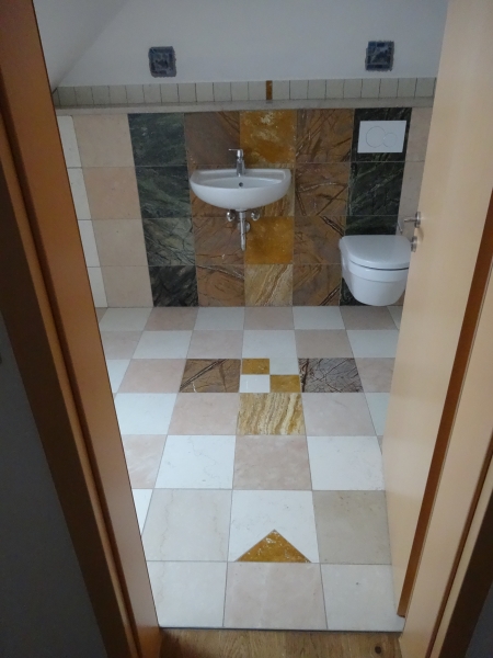 Verwendet wurden hier Rosa Perlio, Bianco Perlino, Travertin Gold, Rainforest Gold, Rainforest Green, Botticino und Jura gelb.