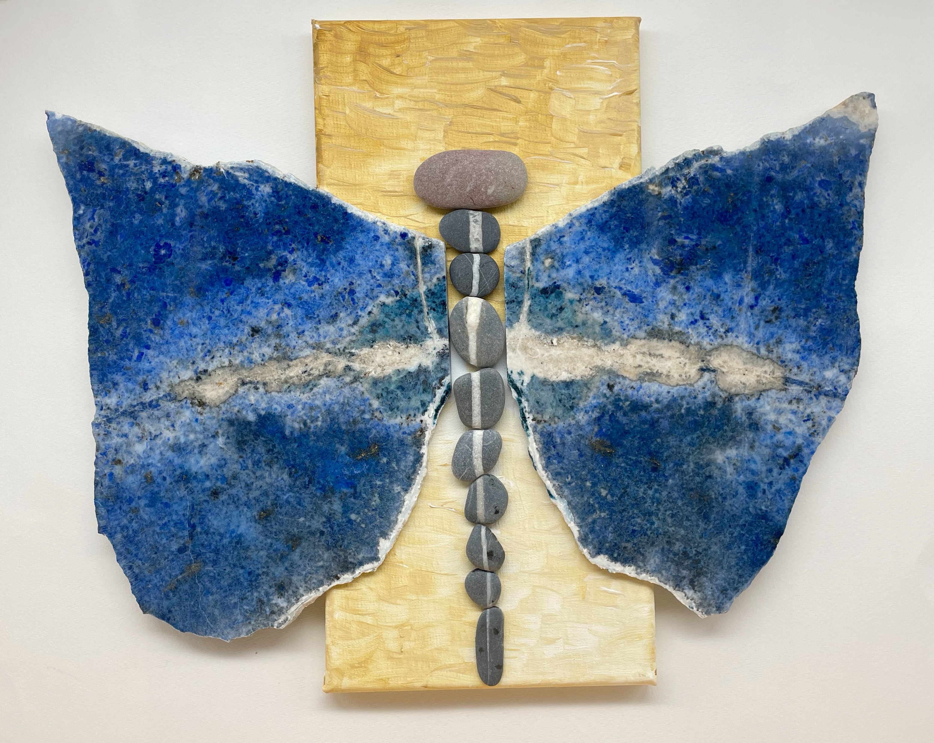 Lapislazuli / Ultramarin 3 mm polierte Spiegelplatten mit Strandkiesel aus Schiefer von Almanarre / Cote d’Azur auf coloriertem Trägerrahmen, Einzelstück, nicht reproduzierbar, Künstlerische Handarbeit, Hergestellt in Bad Wörishofen. Unikat