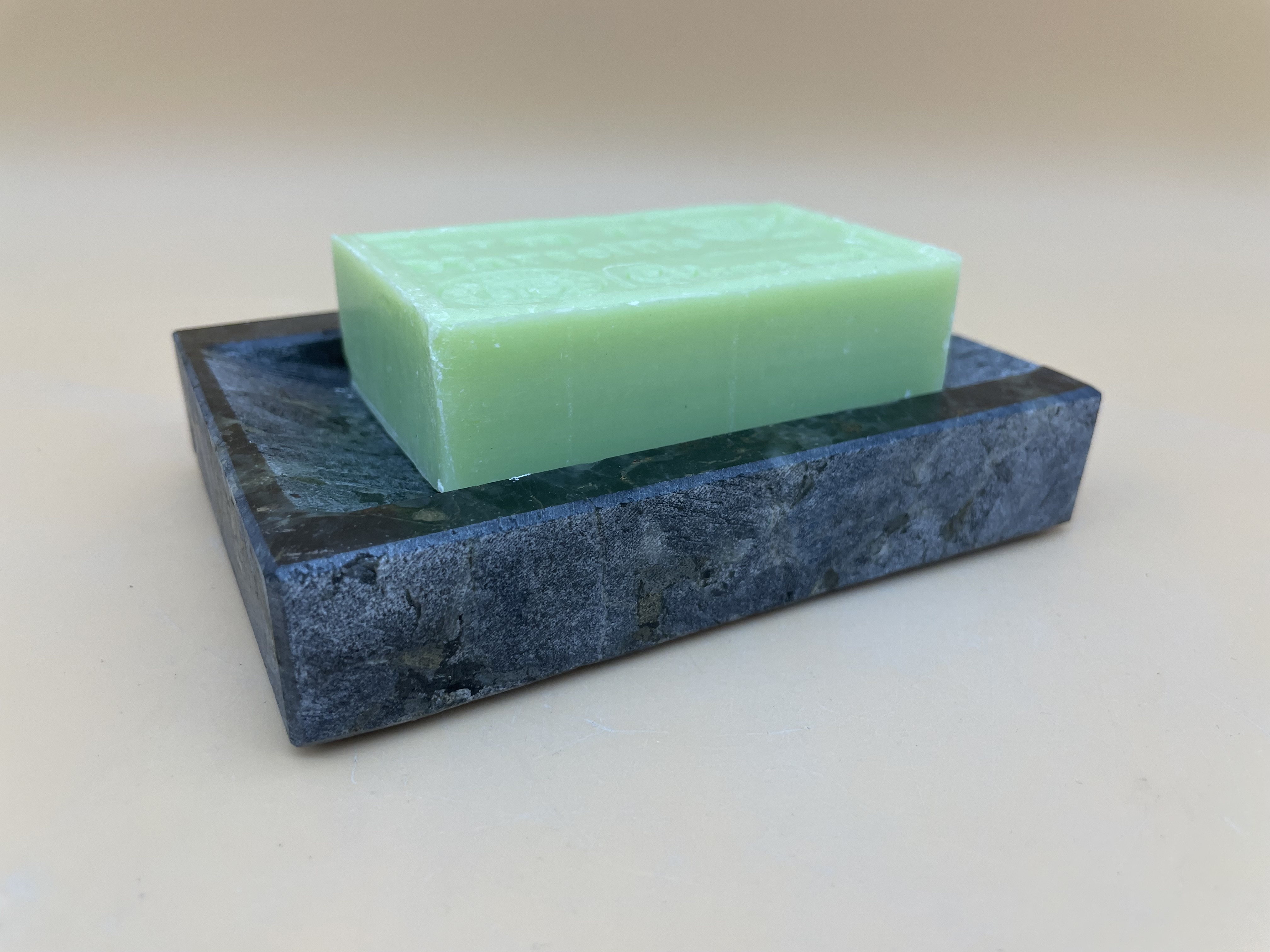 Seifenschale aus nachhaltigem Naturstein, nichts darf verschwendet werden. Unsere Seifenschalen werden aus den Abschnittmaterialien von Treppen, Küchenarbeitsplatten, Fensterbänken, Waschtischen usw. hergestellt. Unikat Gewicht: 465 g Größe: L/B/H 13/9/2 cm