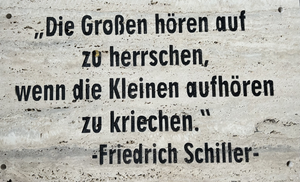 Schiller war einer der schillernsten Gestalten der Deutschen Geschichte des 17th. bis 18th. Jahrhundert. Er war Arzt, Philosoph, Dichter und Dramatiker. Hatte schon Damals Weitblick. Zitat in Travertin eingearbeitet und coloriert. Handarbeit aus Bad Wörishofen. Unikat Größe: L/B/H 65/30/2 cm