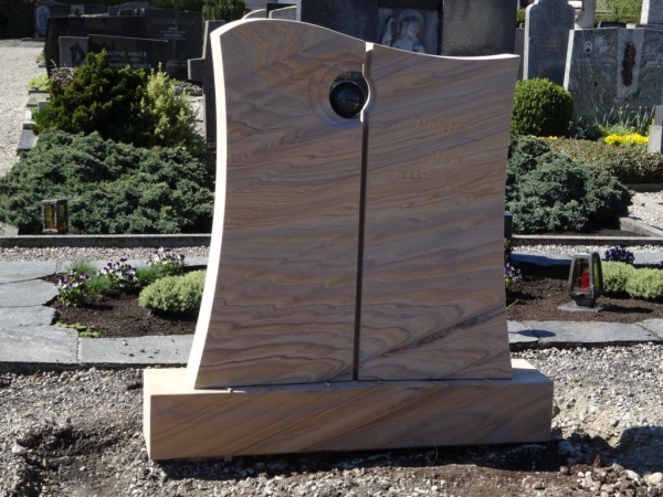 Grabmal aus Rainbow Sandstein auf Sockelstein