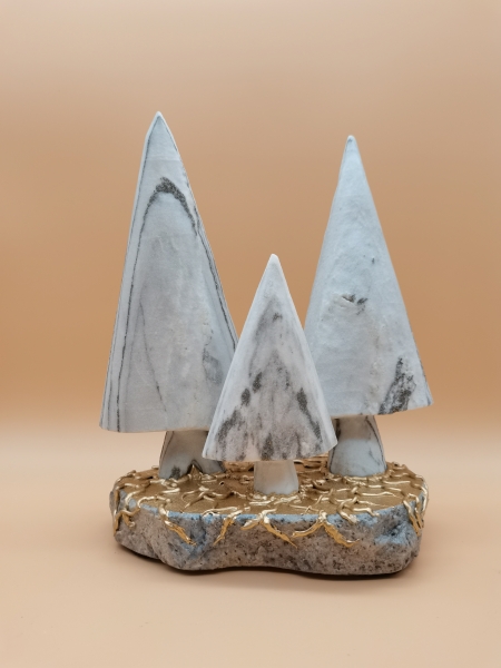 Walliser Goldmarmor Binntree auf M-vergoldeter Wurzelbasisplatte aus Lapislazuli, Modern gehalten, Architekten gerecht, wie mit dem Lineal gezogen, aber mit Wurzeln . Die Wurzeln aus dem Handwerk. Schweizer Handarbeit. Signiert und Nummeriert. Steinbildhauermeister P. Fraefel. Unikat