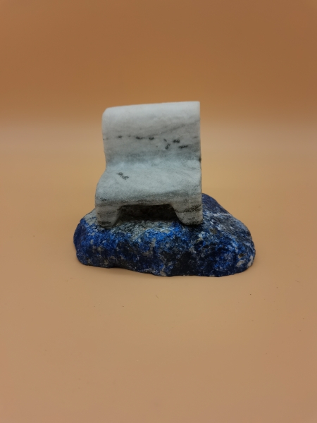 Binntaler-Goldmarmor-Bank auf blauen Lapis Boden. Symbol „Ich beweg mich nicht mehr von der Stelle, bevor ich nicht das bekomme was ich will. Auch für Beamte zur Entspannung geeignet. Schweizer Handarbeit. Unikat