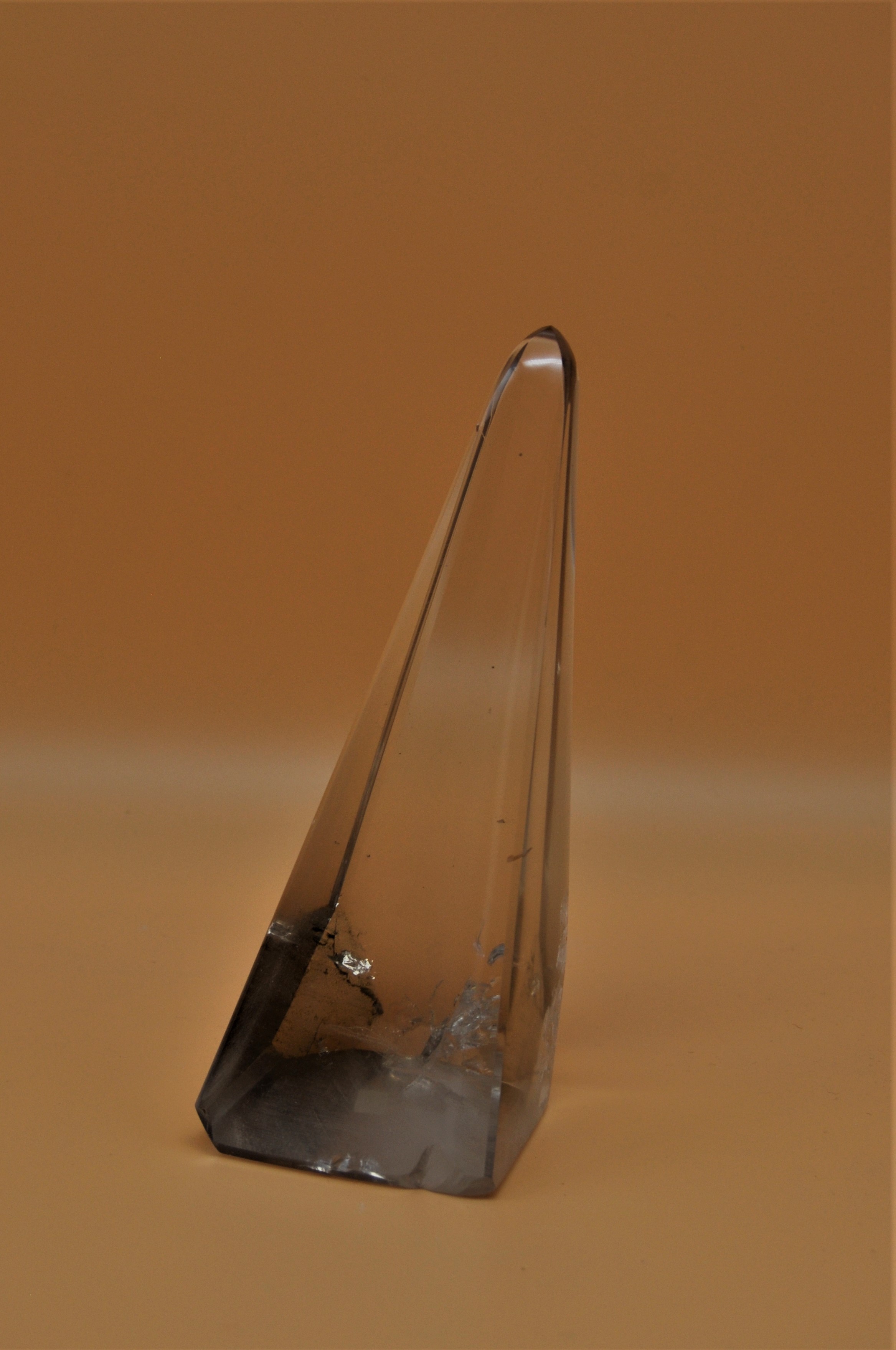 Von vielen angebotenen Rauchquarze gehören die Rauchquarze aus den Alpen zu den klarsten ihrer Gruppe. Aus einem Walliser Bergkristall geschliffener Obelisk , der die Verbindung zwischen den Wallisern und der Binner Sonne darstellt, nicht gerade sondern schräg, wie die freundlichen Walliser eben. Unikat