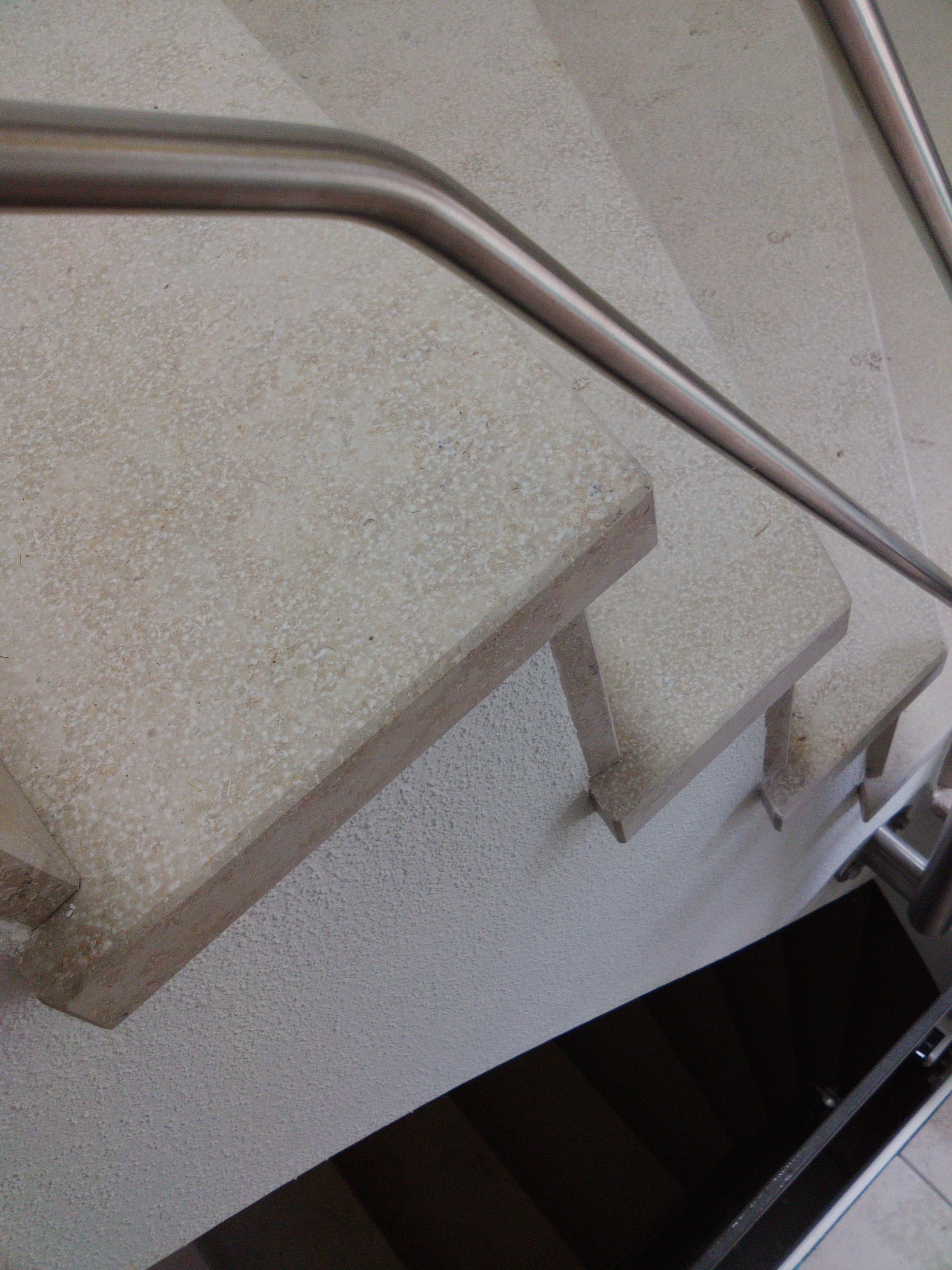 Es muss nicht immer poliert sein, eine Innentreppe aus einheimischen Jura Kalkstein mit gestockt-gebürsteter Oberfläche hat einen optisch warmen Charakter der immer beliebter wird. Abgebaut wird dieser ehemalige Meeresboden übrigens in Oberbayern, der von den Römern bereits geschätzt und verbaut wurde.