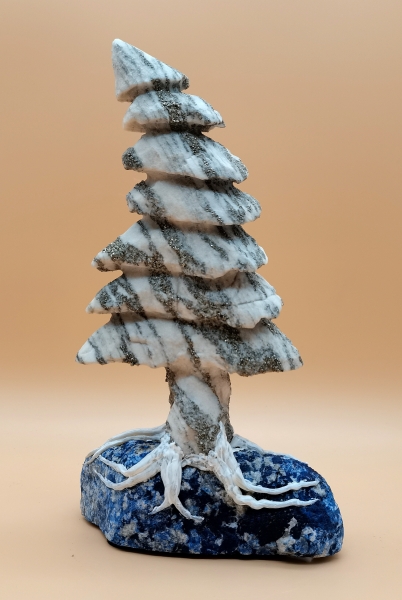 Der Binntree, ein Symbol des festhalten am Ort des Ursprungs, ein Baum, ein Fels, die Wurzeln, Handarbeit aus Goldmarmor und echten Lapislazuli, Hergestellt in Bad Wörishofen. Unikat