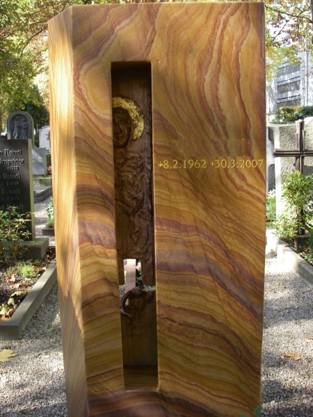 Der Entwurf des Steines, sowie die eingearbeitete Skulptur, ein Bronzerelief sind von dem Bildhauer und Maler Franz Höchstötter.
